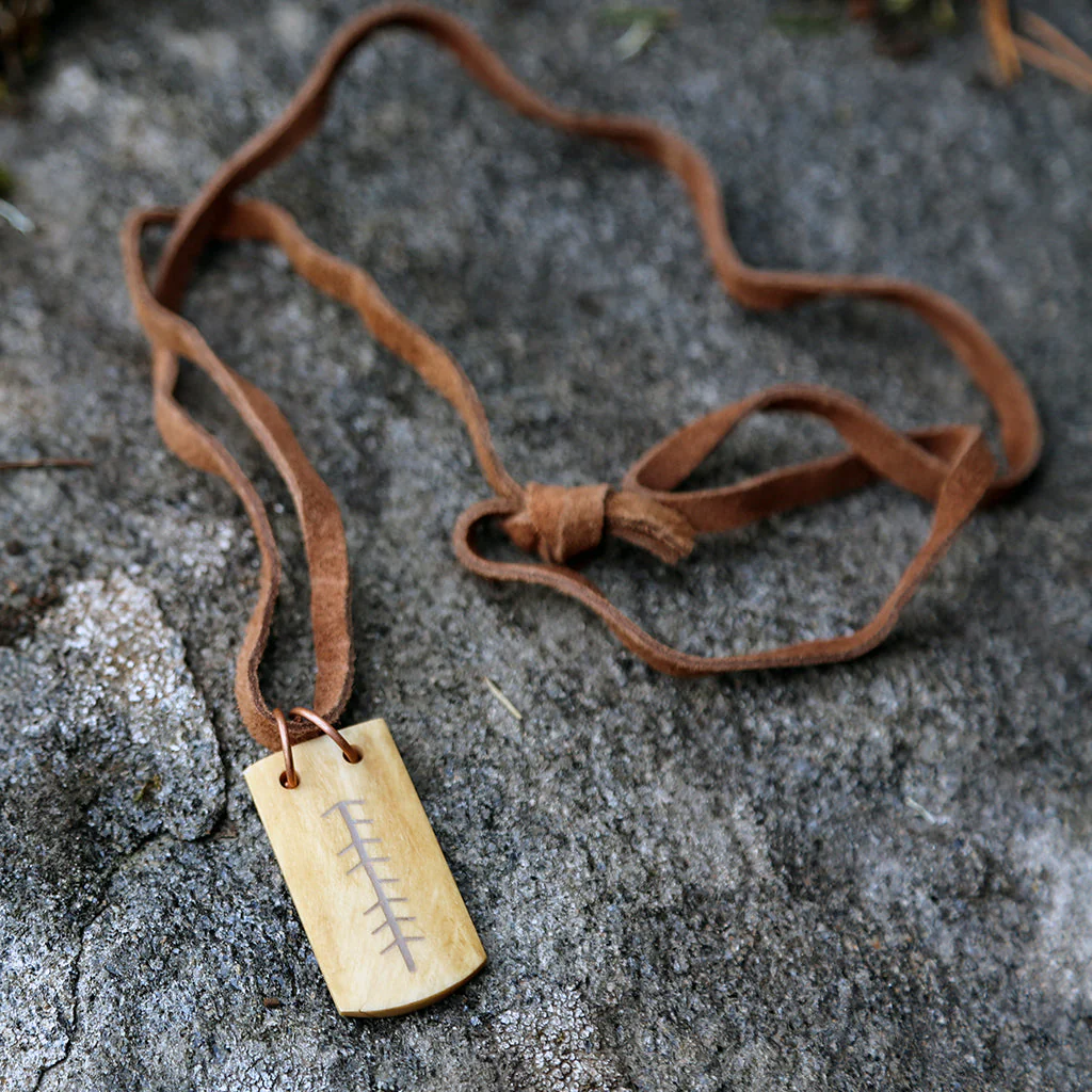 Handmade bone amulet with stacked Tiwaz runes - a magical design that is believed to increase chances of victory.