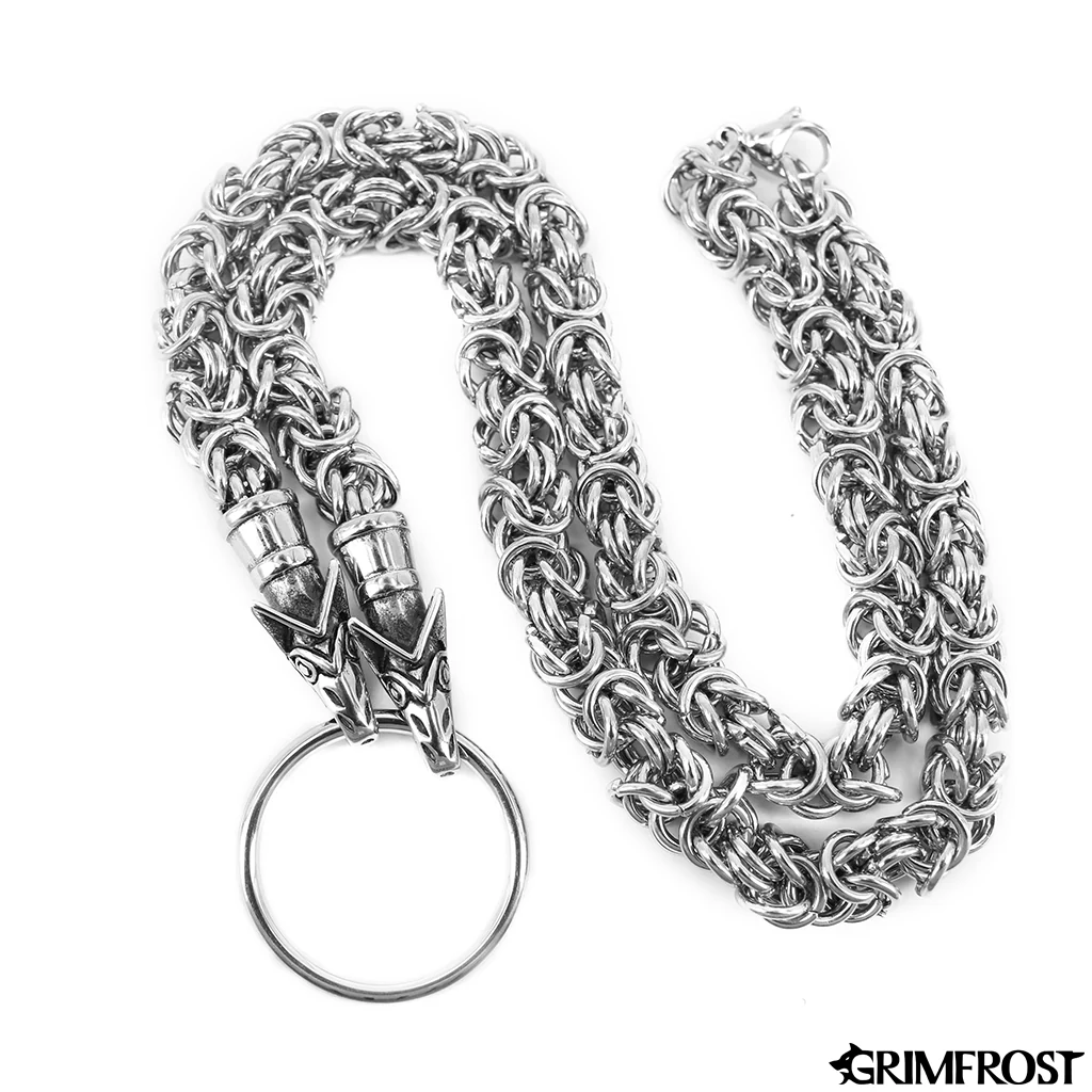 Vikings used necklaces with animals or beasts biting onto a ring where pendants were hung. This variant consists of a King Chain ending in the heads of Geri and Freki, the wolves of Odin, that bite onto a pendant ring. As the name implies, this is the king of all chains and it was seen as a sign of success and power among the Vikings.